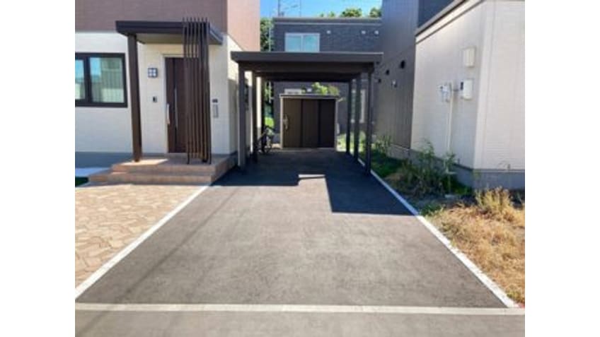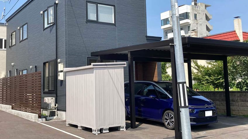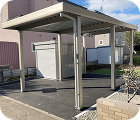 駐車スペースには、しっかりとした作りのカーポートと物置を設置いたしました。