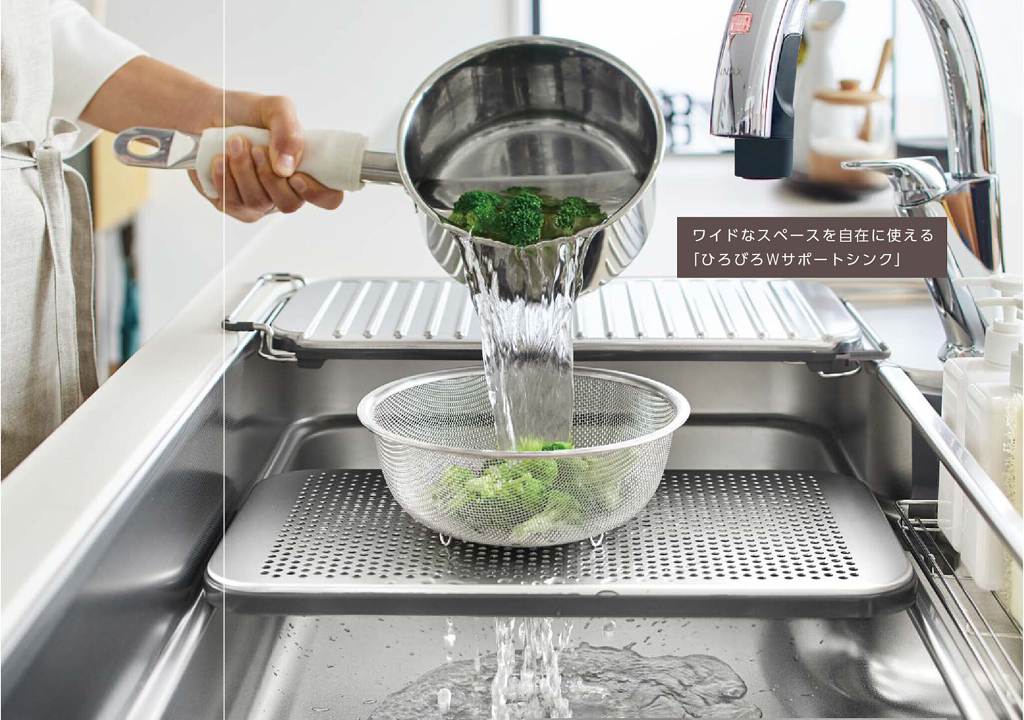 ワイドなスペースで自在に使える「ひろびろWサポートシンク」 (引用元 :リクシル)