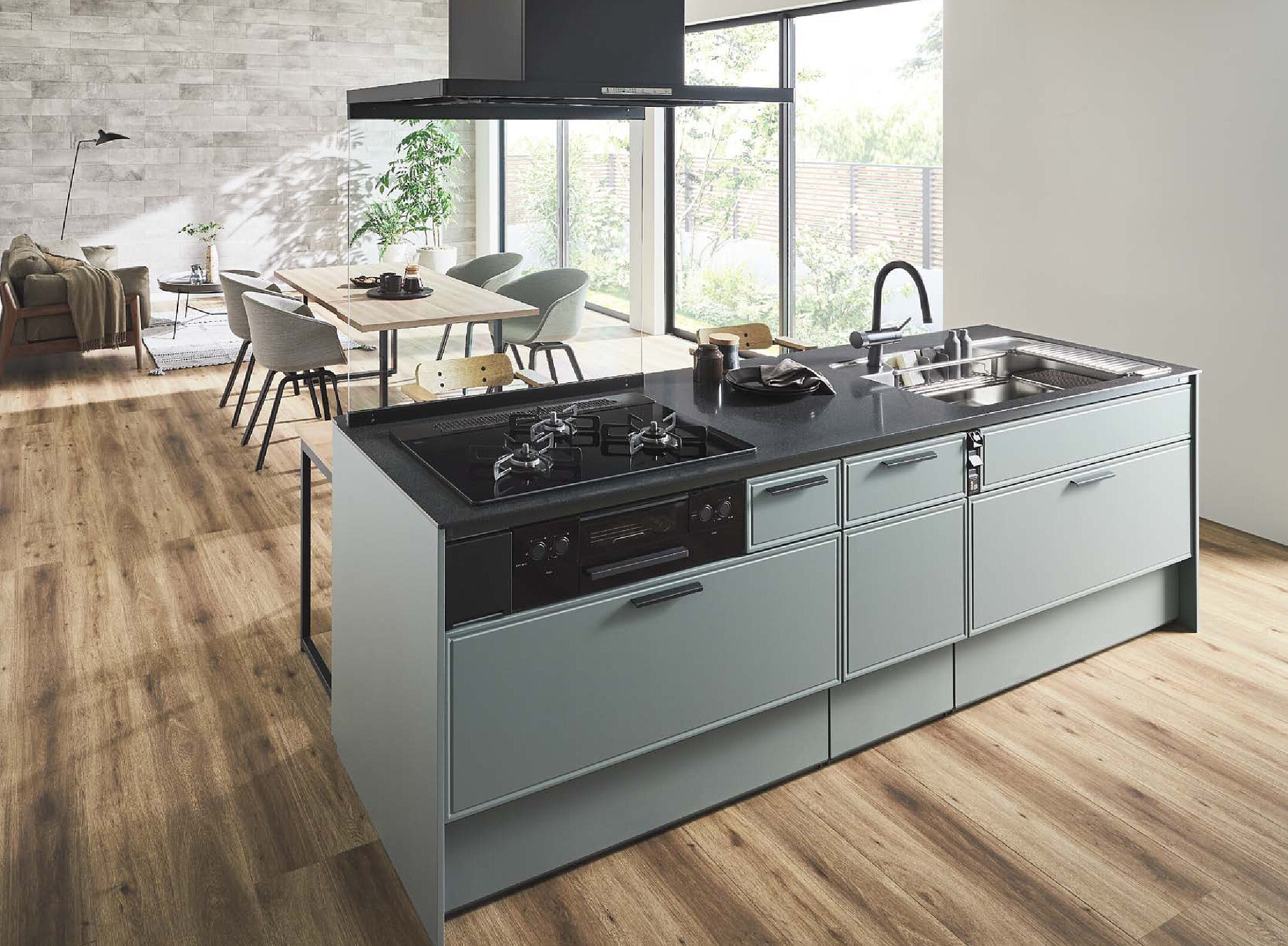 2つのレーンと2つのプレートが、調理や後片付けを柔軟にサポート。